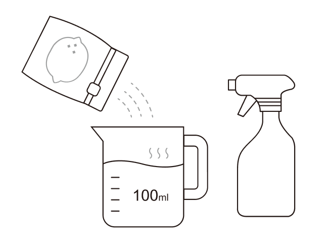 將25g食品級檸檬酸溶於100ml溫水中,攪拌均勻確定檸檬酸完全溶解後裝入噴霧瓶備用。